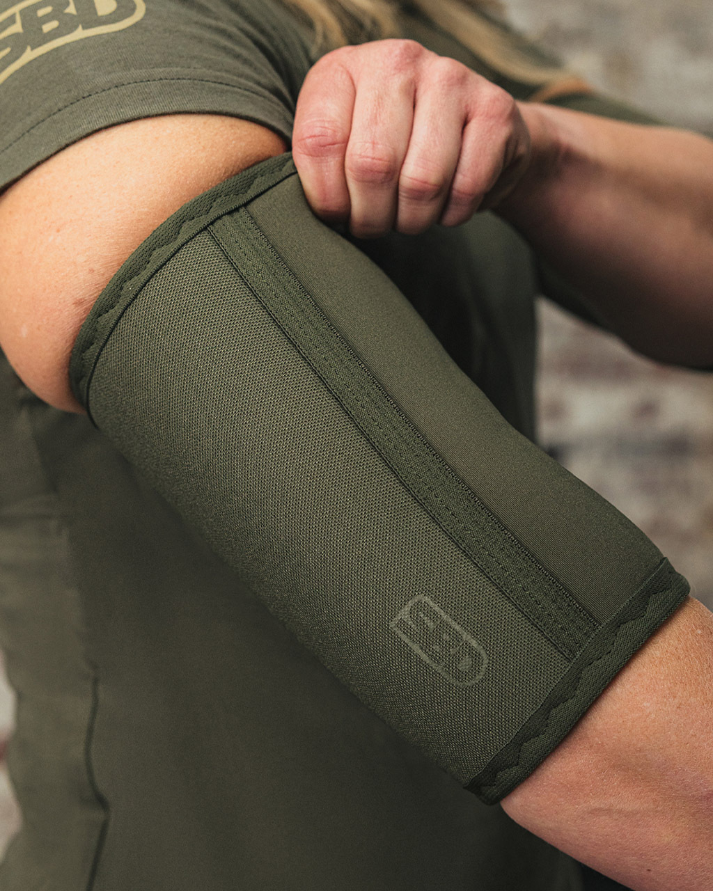 SBD護肘,有內外側之分,內側使用5mm厚度方便穿戴,外側使用7mm厚度提供延展支撐。