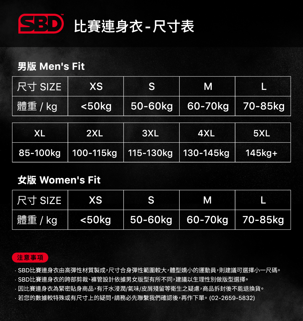 # 任何比賽連身衣尺寸問題,歡迎先聯繫我們SBD台灣官方Line客服,或來電